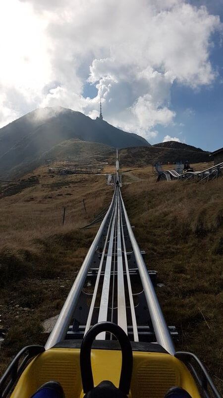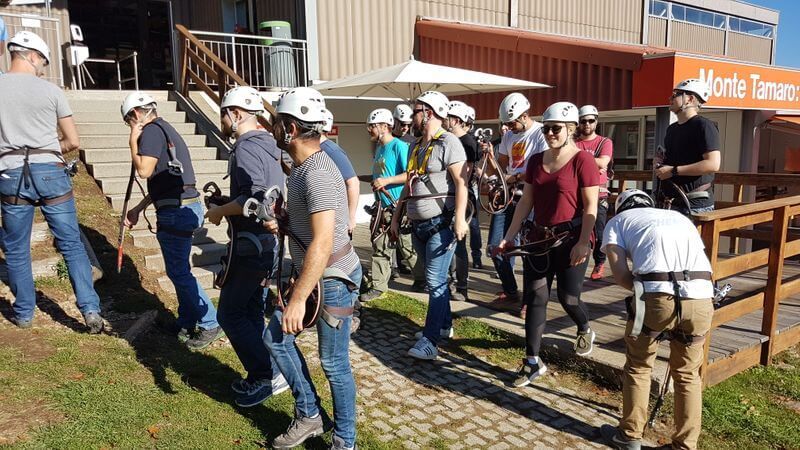 Am Samstagmorgen hiess es, sich um 8.45 Uhr zu besammeln, um gemeinsam den Seilpark des Monte Tamaros zu erobern. Da waren einige sehr verschlafene Gesichter dabei, sind viele von uns doch nicht unbedingt als Frühaufsteher bekannt. Tapfer bissen sie aber die Zähne zusammen und schlossen sich dem spannenden Programm an. An der Mittelstation des Berges wurden wir von den Mitarbeitern des Parks kurz geschult, bevor man sich auf den schön in einem Wald gelegenen Parcour aufmachte, um sich seinen Ängsten zu stellen und allfällige Höhenangst zu überwinden. Hier soll angemerkt sein, dass die Autorin dieses Textes unter eben dieser Furcht leidet und sich nicht dazu überwinden wollte, sich da durch zu kämpfen. Um die Zeit zu überbrücken, lief eine Gruppe von Leidensgenossen von der Mittelstation zur Bergstation. Das Wetter war auf unserer Seite, schönster Sonnenschein und angenehm warm, jedoch wurde wurde der Weg gegen Schluss ganz schön steil, sodass wir, im Bergrestaurant angekommen, unser Mittagessen als wohlverdient bezeichnen konnten. Die Seilpark-Gruppe erschien kurz nach uns, etwas erschöpft, aber zufrieden und alle noch in einem Stück! Nachdem man sich im Restaurant gestärkt hatte, mussten natürlich auch noch die Rodelbahn und der Flying Fox ausprobiert werden!