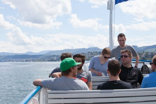 Der Weg dorthin führte über den schönen, ruhigen Zürisee. Auf dem Schiff wehte uns der Wind um die Nase und bei einem ersten schmackhaften Bier genossen wir das herrliche Alpenpanorama und die Fahrt nach Wädenswil.