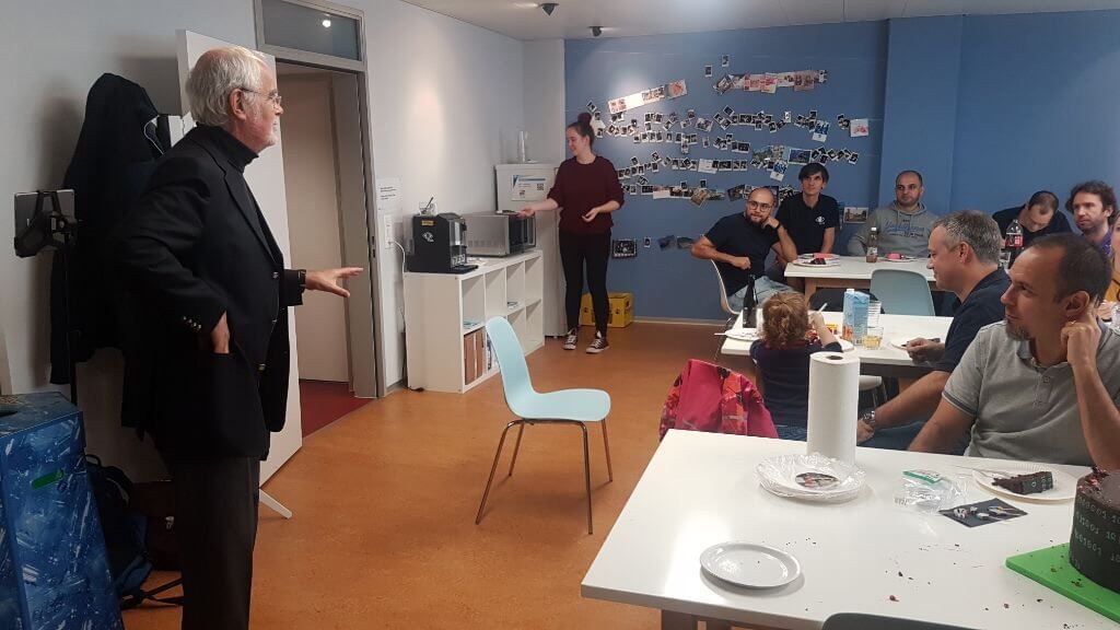 Wir feierten unseren fünften Jahrestag im VSHN-Office mit leckerem Kuchen, einer Rede unseres Verwaltungsratspräsidenten Bruce und neuen Hoodies für jeden VSHNeer!