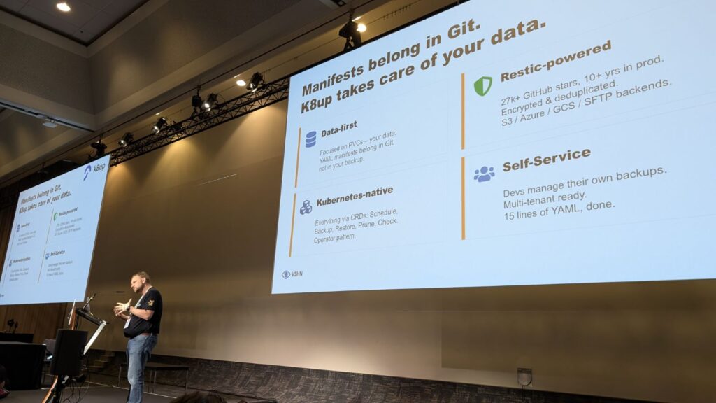A special moment was Aarno Aukia’s lightning talk on K8up.