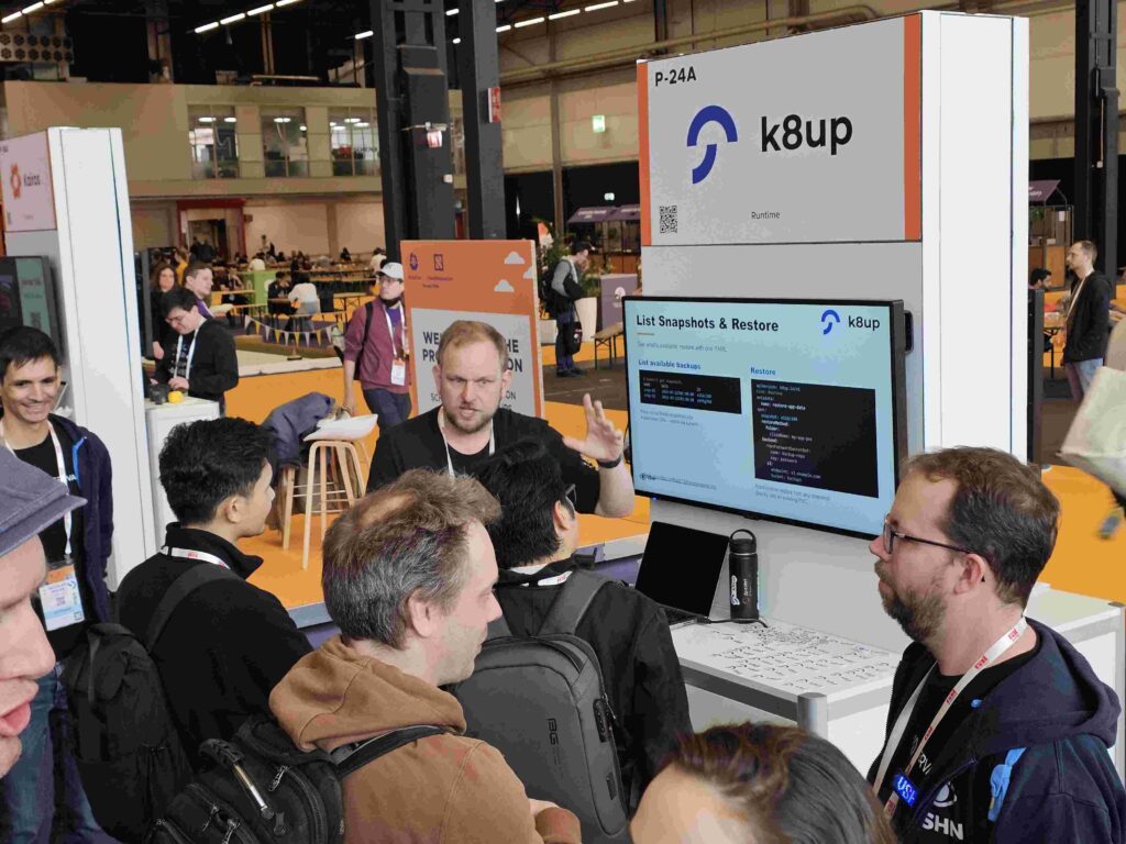 At the K8up kiosk in the Project Pavilion, we had many great conversations with users, contributors, and curious newcomers.