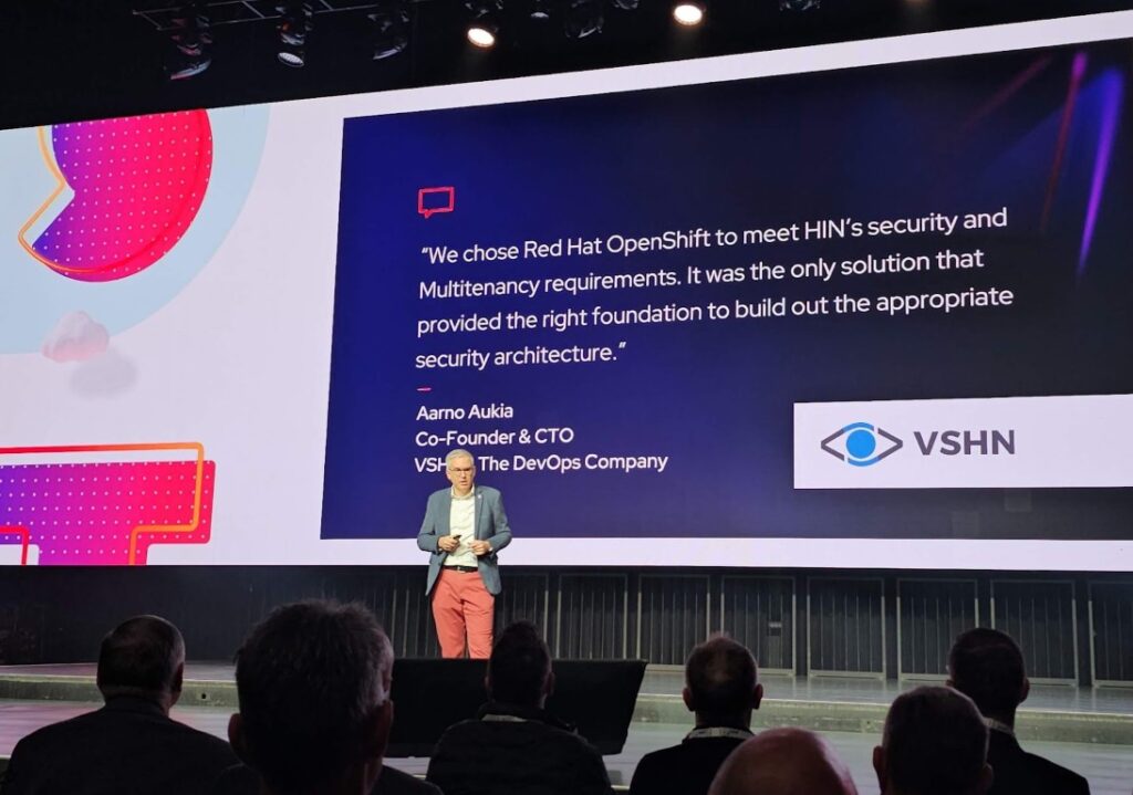 The day kicked off with a special moment right away: a strong quote about VSHN and our collaboration with HIN (Health Info Net), shared by Richard Zobrist, Red Hat Country Manager Switzerland, during the opening keynote. Aarno later summed it up with a wink: “Its not every day that the Red Hat country manager Richard drops my name during the opening keynote 🥰” – a great start to an exciting event day.