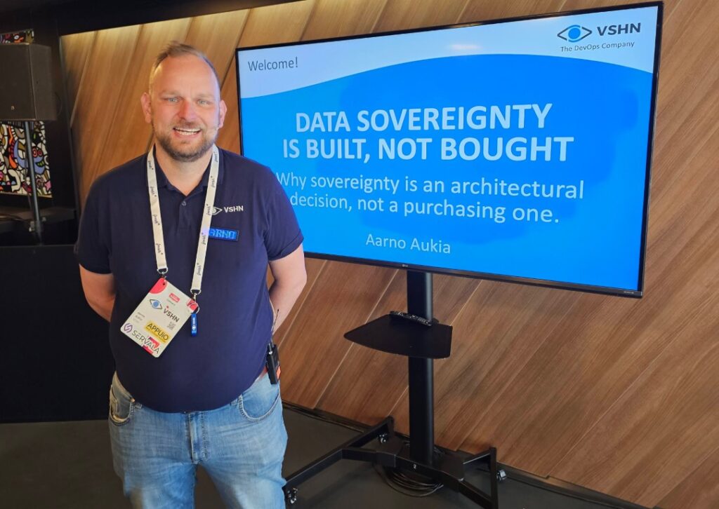 One of the highlights for us was the Partner Spotlight talk by Aarno Aukia, CTO & Partner at VSHN. In his lightning talk “Data Sovereignty Is Built, Not Bought“, Aarno addressed a topic that ran like a common thread through many conversations throughout the day.